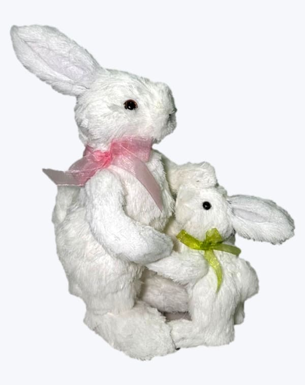 CONEJO BLANCO CON LISTÓN AZUL